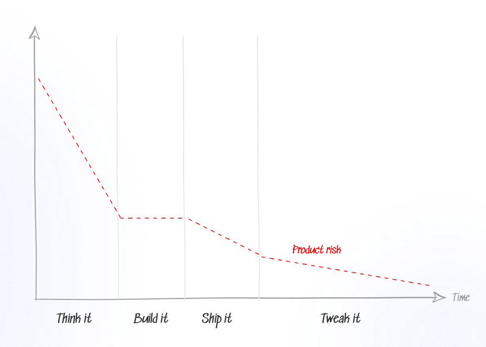The phased approach (“Think it, Build it, Ship it, Tweak it”) ensures fewer resources are wasted on unproven ideas. Multiple teams can come up with ideas for new products/features (in smaller teams, it could be multiple ideas from the same team). Subjective decisions are taken and you remain with only a few ideas that show merit. Not a single line of code needs to be written before the Build It phase.
